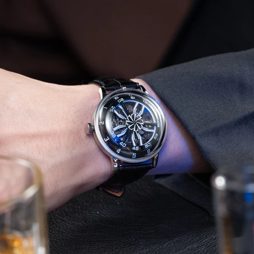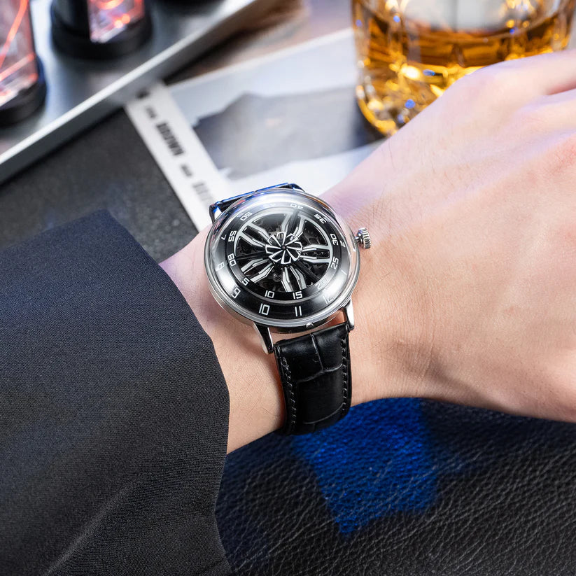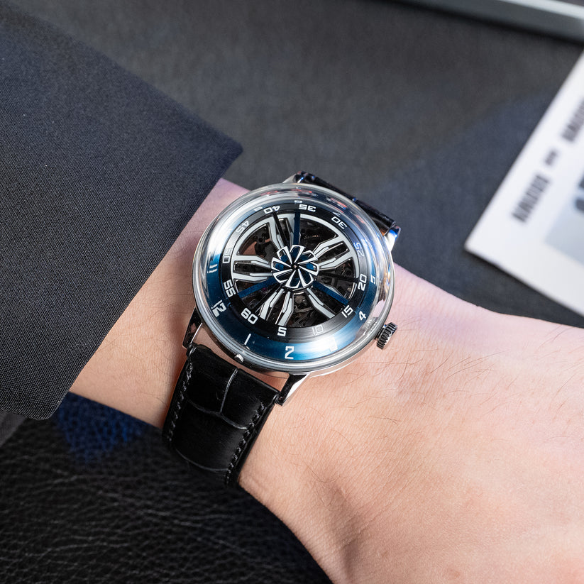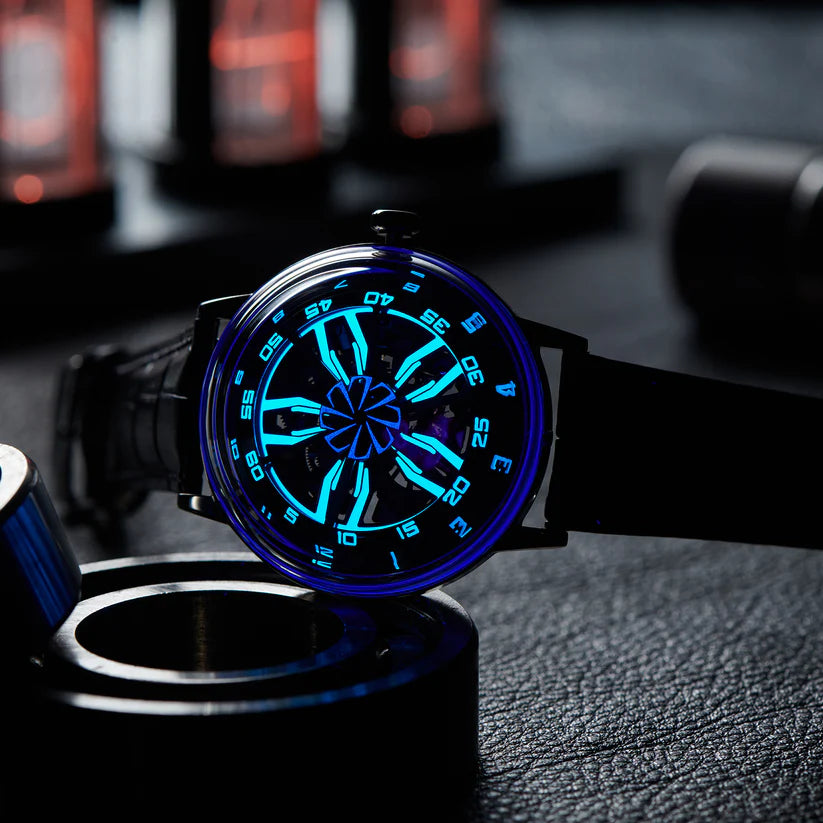 Dial:Blue Skeleton & Unique Supercar Alloy Wheels Dial, And Hands With Luminous Paint.