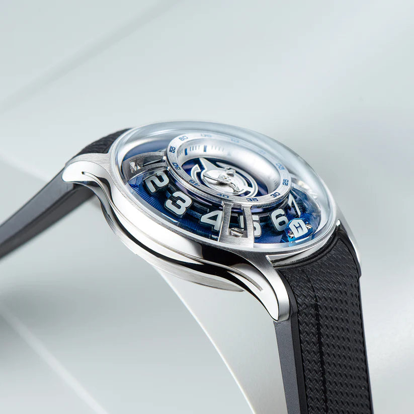 Dial:Ghost Blue Gradient Dial, Unique Mechanical Rotating Indices And Hands With Luminescent Coating